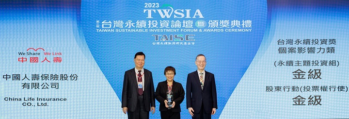 Facing with the challenges brought by climate change, how can the insurance sector exert its influence to realize environmental and sustainable vision? China Life has long devoted to sustainable finance and integrated ESG principles into investment management framework, realizing its promise for a sustainable future from its core functions. China Life’s performance in sustainable investment has garnered recognition from “TAIWAN SIA Taiwan Sustainable Investment Awards” for three consecutive years. This year, China Life was awarded “Excellence- Impact Institute in Life Insurance”, “Gold-Sustainability Themed Investing” and “Gold-Shareholder Action”. Sustainable development is the foundation for economic and societal growth. China Life, an important asset manager, has responded to climate change and net-zero target through tangible investment strategies with an aim to encourage sustainable innovation and push for transition. The Company has actively worked with different stakeholders and practiced sustainable operation through sustainable investments to fulfill its obligation to society. The goal is to become the benchmark in the industry while creating sustainable value for all stakeholders and the society.