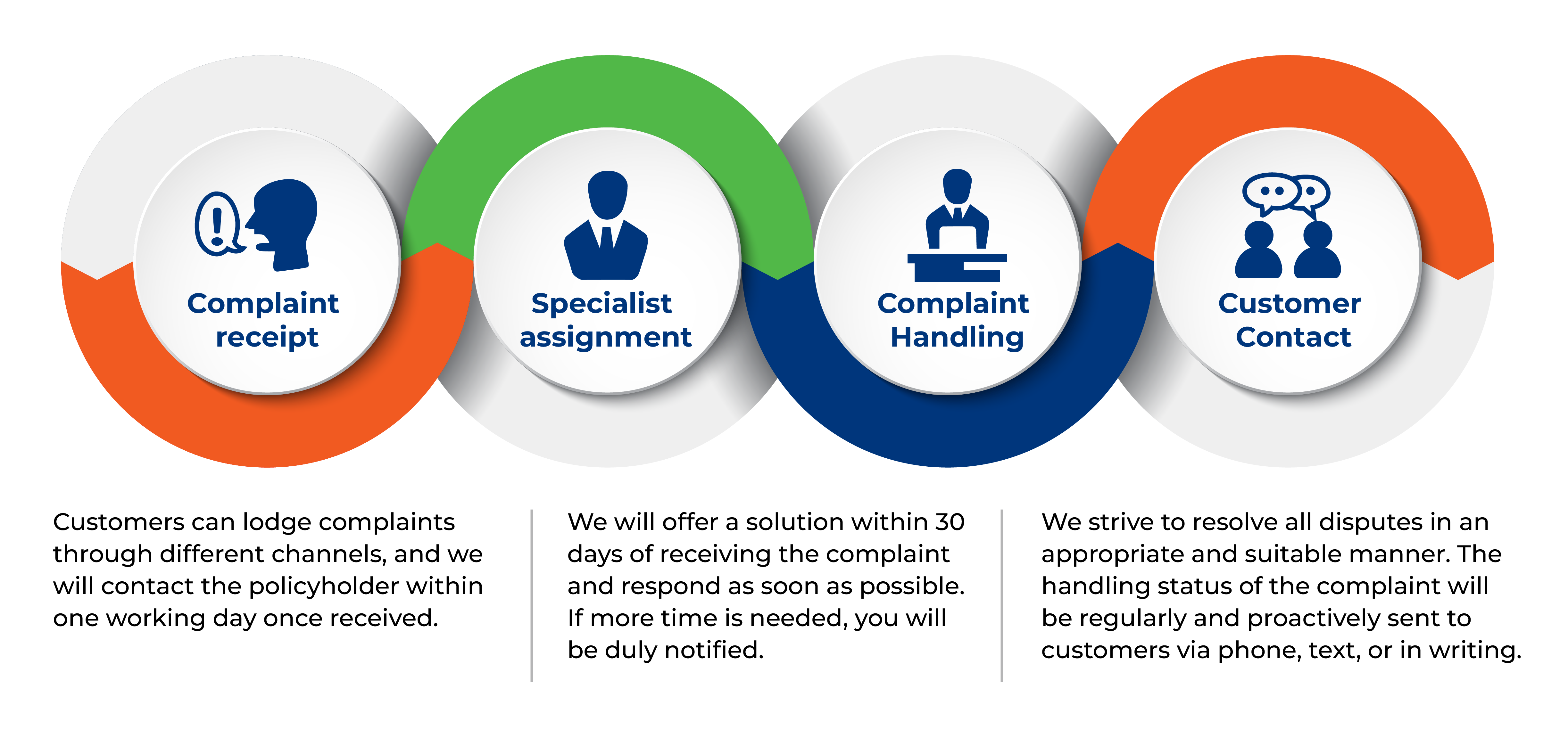 We are attentive to your opinions and suggestions, providing multiple channels to submit complaints and a comprehensive complaint handling procedures. By doing so, we hope all policyholders feel comfortable sharing their thoughts with us and all problems can be solved.