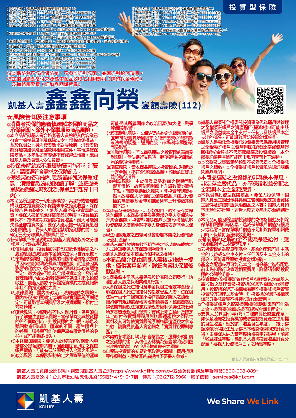 凱基人壽鑫鑫向榮變額壽險(112)BCBCRIL(業務通路專屬)