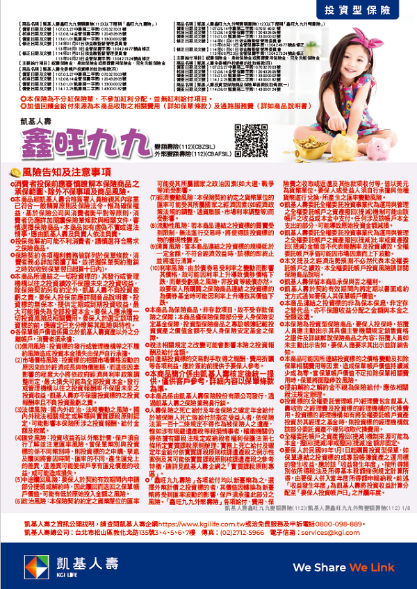 凱基人壽鑫旺九九外幣變額壽險(112)CBAFSIL(業務通路專屬)