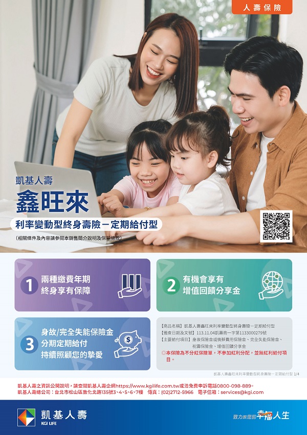 凱基人壽鑫旺來利率變動型終身壽險-定期給付型