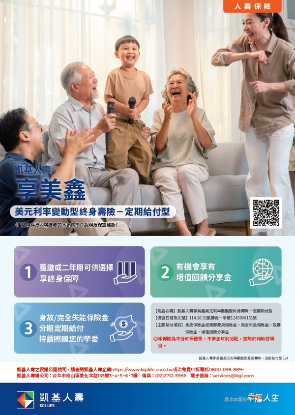 凱基人壽享美鑫美元利率變動型終身壽險-定期給付型