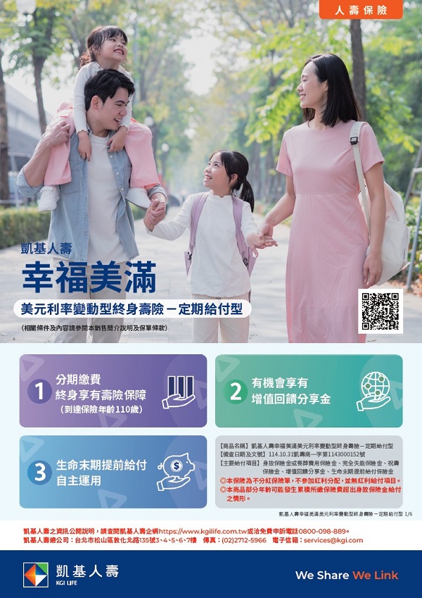 凱基人壽幸福美滿美元利率變動型終身壽險-定期給付型