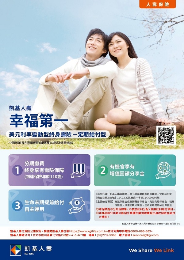 凱基人壽幸福第一美元利率變動型終身壽險-定期給付型(銀保通路專屬)