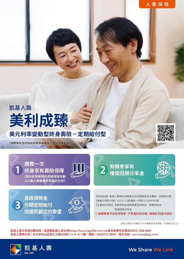 凱基人壽美利成臻美元利率變動型終身壽險-定期給付型