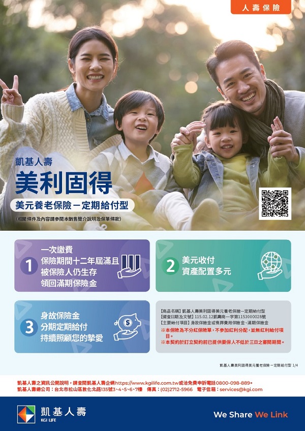 凱基人壽美利固得美元養老保險-定期給付型