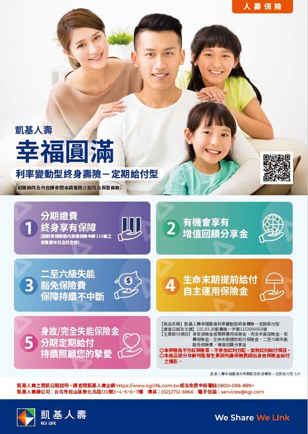凱基人壽幸福圓滿利率變動型終身壽險-定期給付型