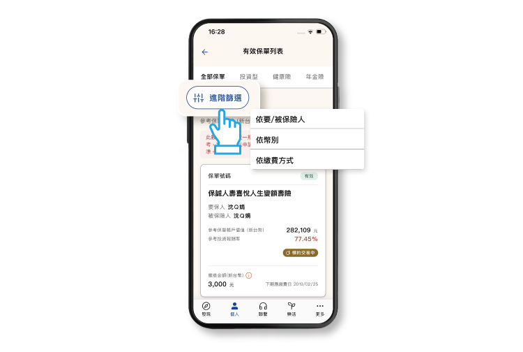 直覺、簡潔的設計,便利您查詢保單服務、商品介紹及保戶專屬優惠
